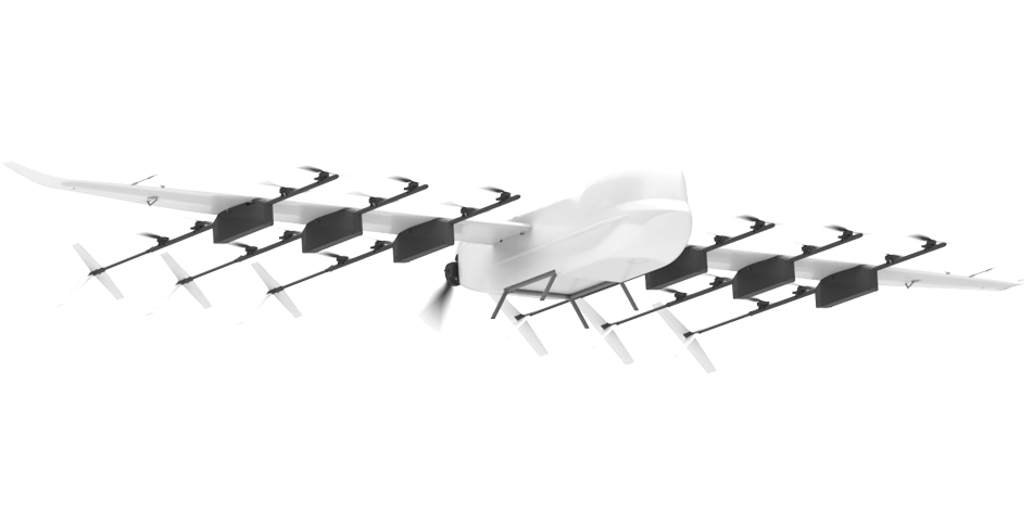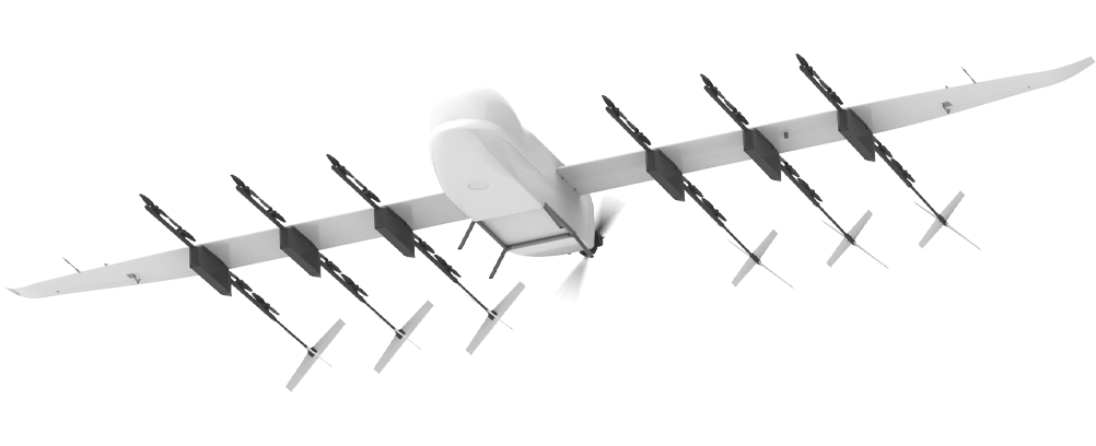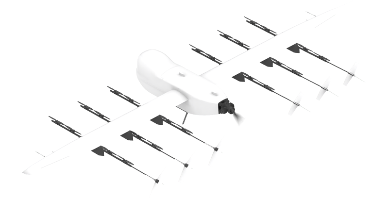任意两个旋翼失效,飞机仍能安全降落。巡航时旋翼保持与机身平行方向锁定,减小飞行阻力。